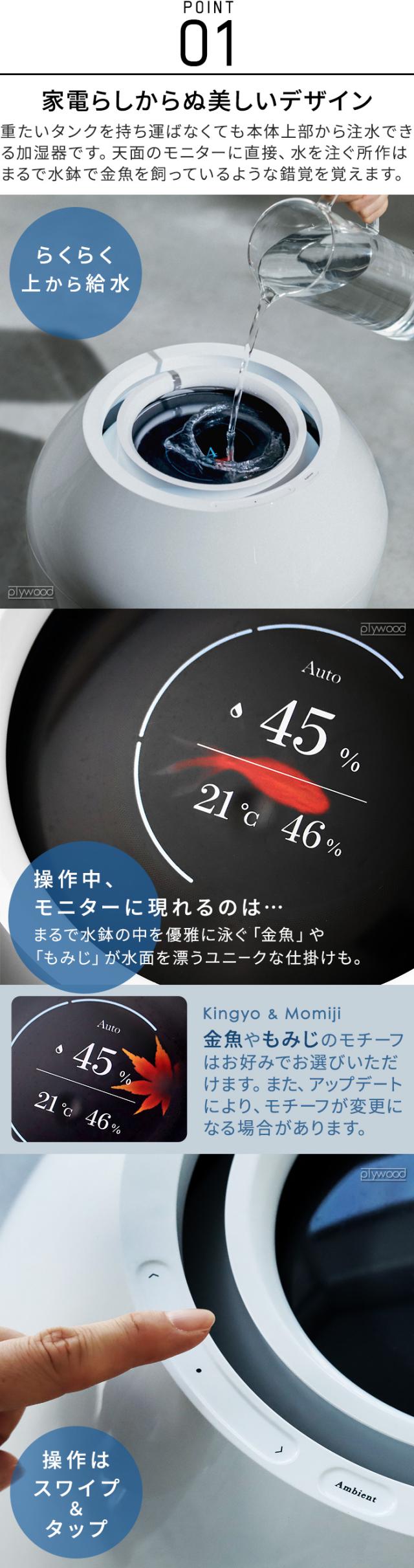 | BALMUDA Connectアプリ対応 直感的な操作が可能に。離れた場所からの遠隔操作や運転状況の確認もでき、Rainの使い心地をさらに高めます。 Ambient Time 自然をテーマにした心地よいサウンドとディスプレイに流れる映像、やわらかい光の組合せにより、癒し効果をもたらします。 チャイルドロック ロック機能/電源ボタンを3回タップ |