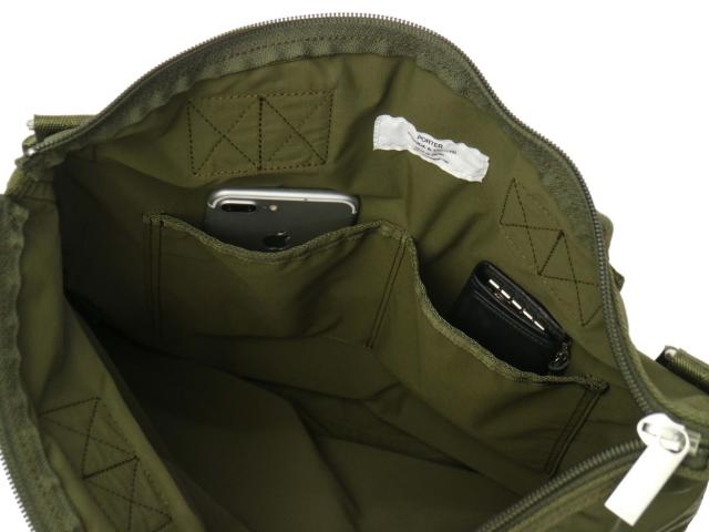 メインルームはB4サイズに対応した大きめのサイズ感で、休日のお出掛けはもちろんのこと通学や通勤にもおすすめです。内部には小分けに便利なポケットを2ヶ所装備し、分けておきたい小物の管理に便利なスペースになっています。
