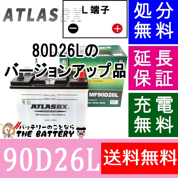 90D26L 自動車バッテリー 交換 アトラス 国産車互換 48D26L / 55D26L / 65D26L / 75D26L / 80D26L / 90D26L