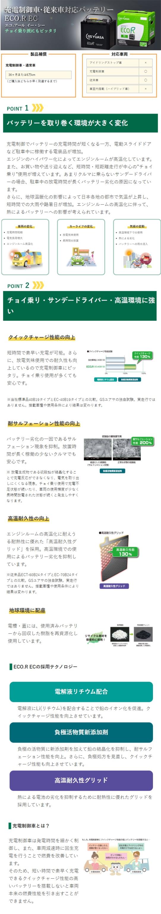 70B24L バッテリー 自動車 GS YUASA エコアールシリーズ ジーエス ユアサ 国産 車バッテリー交換 EC-70B24L