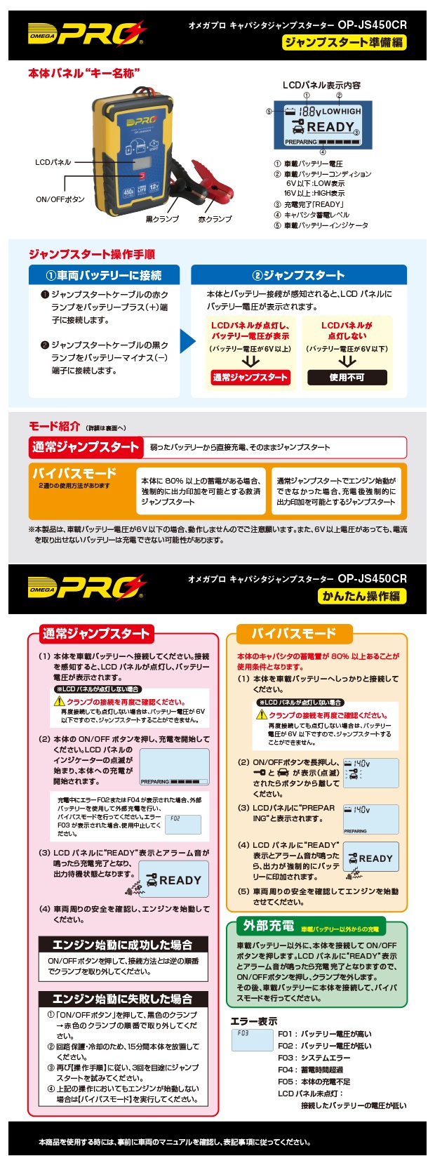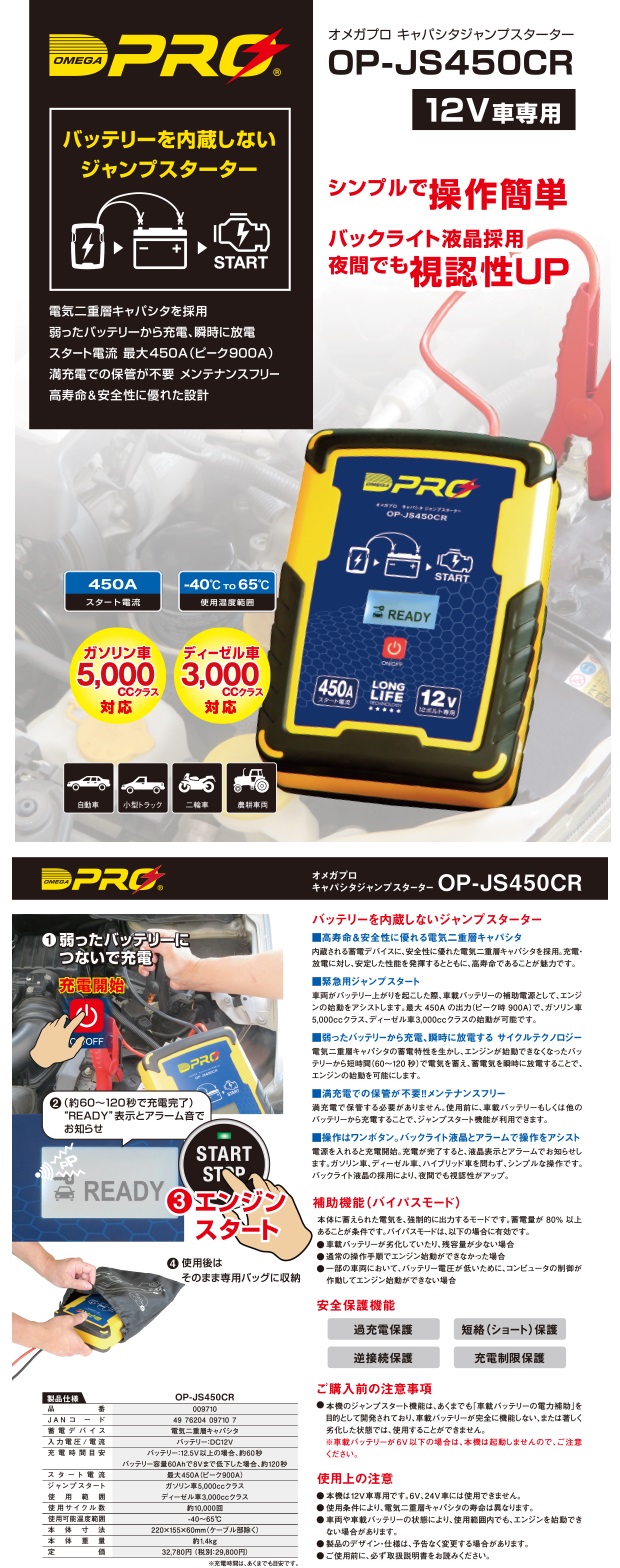 ▓ OP-JS450CR ( オメガ・プロ ) キャパシタジャンプスターター