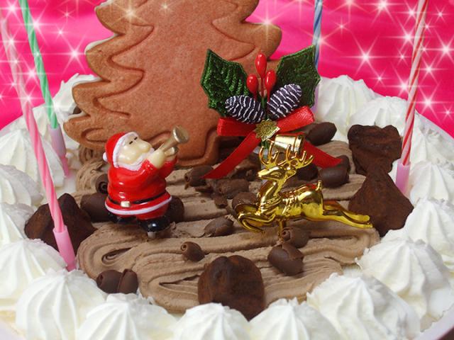 蔵王山麓で生産される新鮮な生乳から作った乳脂肪12.0%のプレミアムアイスクリームをケーキ台に使いました。この上にチョコホイップとトリュフでデコレーションしてあります。サンタクロースやツリークッキーを別添にしてありますのでご家庭でお好きなように飾りつけが楽しめます。