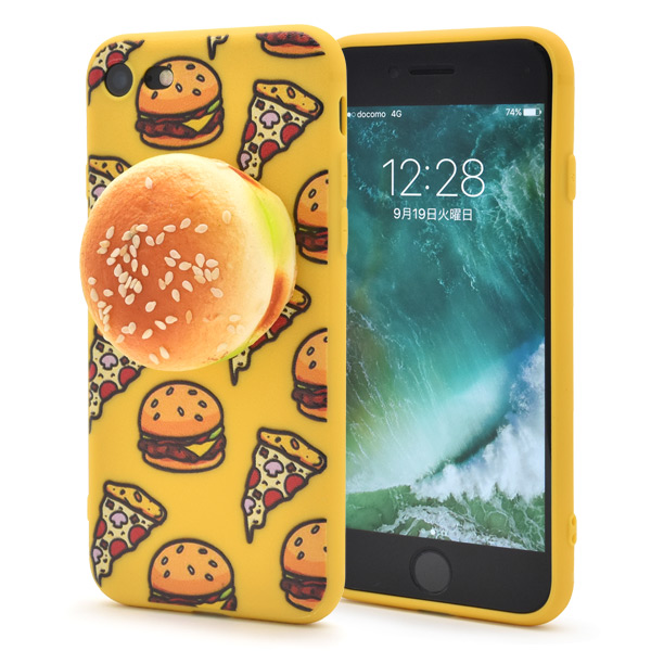 ポップなジャンクフード柄のケースに、ハンバーガーのスクイーズがトッピングされたiPhone7/8用ケース。