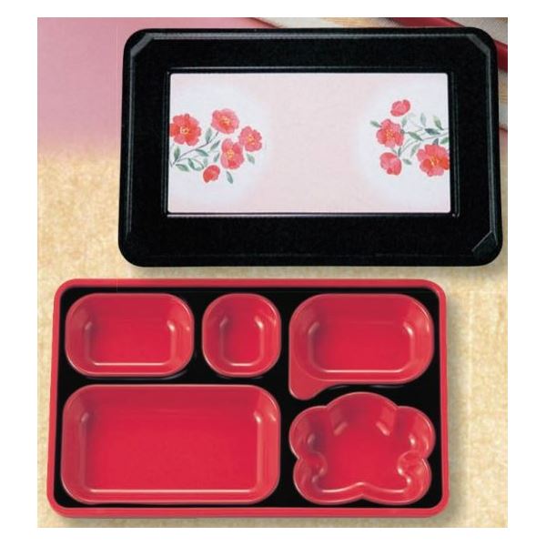 (業務用弁当箱10セット)FW-600 ダイナミック副食 〔本体〕黒(内赤40)/〔蓋〕黒・しゃくやく 【北海道・沖縄・離島配送不可】