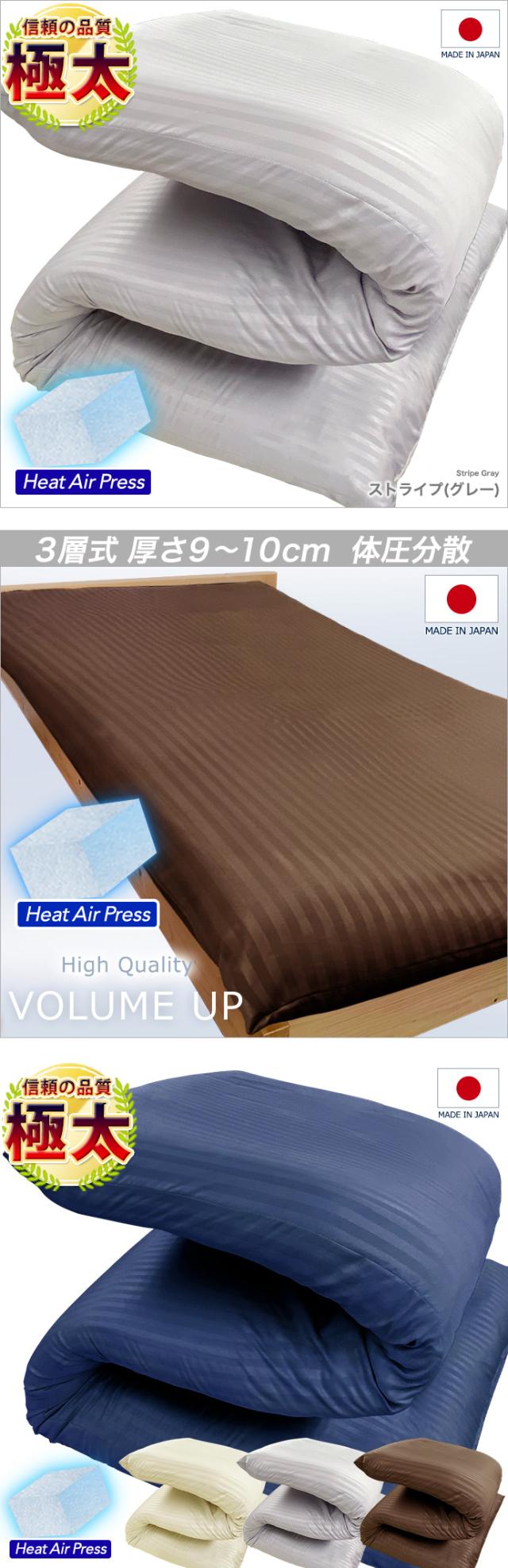 極太9cm〜11cm / 超極太13cm〜15cm 日本製 敷布団 シングル 【五層構造】 極厚 腰の負担を軽減 マット 高反発 敷き布団 防ダニ 抗菌 防臭 消臭 プラチナ繊維 ベッド 畳 折りたたみ 三つ折り 収納 少し 硬め 軽い 腰痛 肩こり 体圧分散 国産
