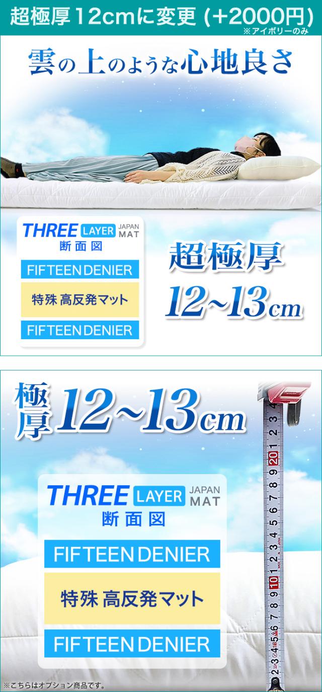 - 厚みが最高です。寝ていて気持ちがいいので購入しました。何年か前にもこれを購入しました。他の会社よりも長持ちします。