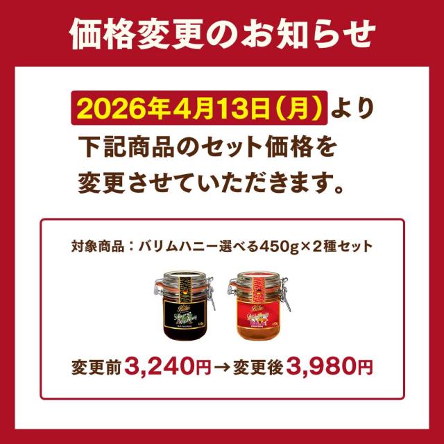 [商品名]ドイツ産はちみつ Balim(バリム)ハニー 選べる450g×2個セット