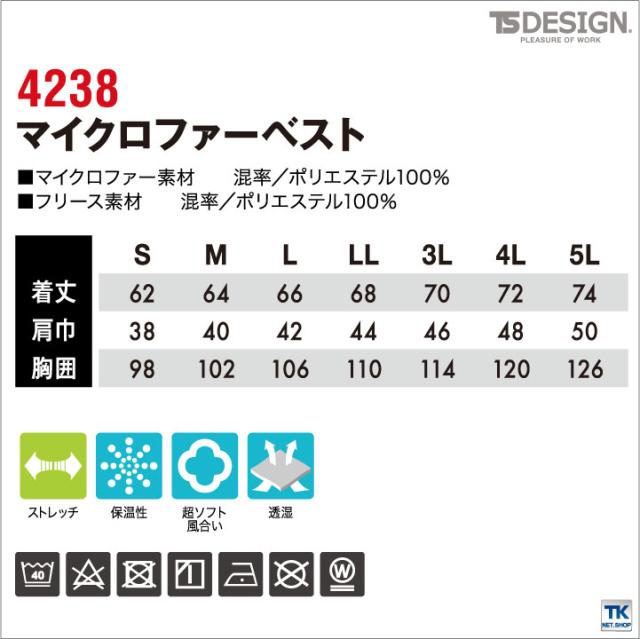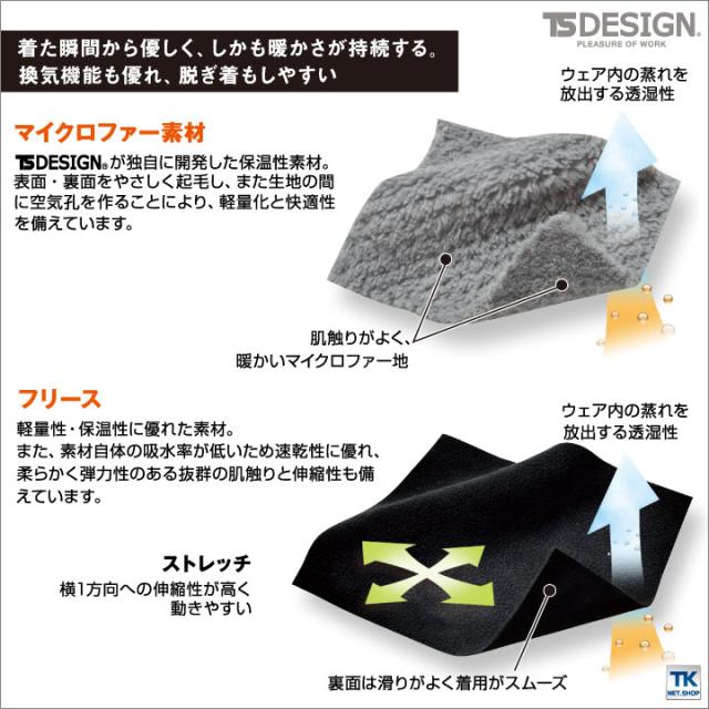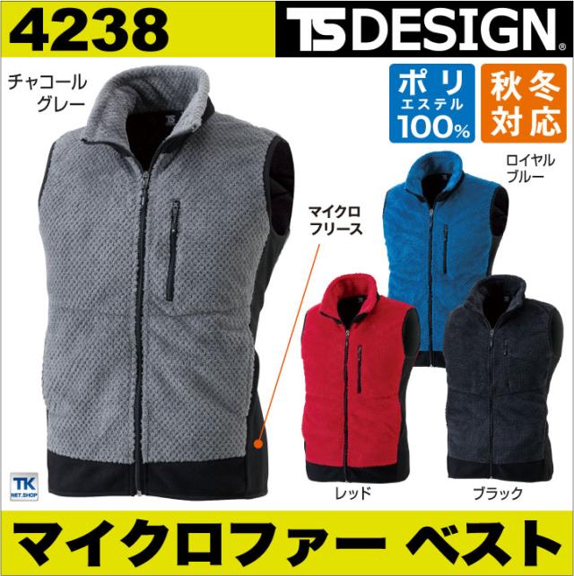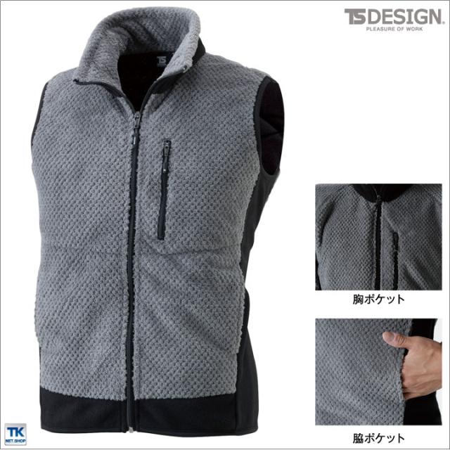 TS DESIGN ベスト 防寒着 防寒服 チャッキ 保温性 マイクロファー マイクロフリース スポーツ アウトドア 秋冬 tw-4238-b