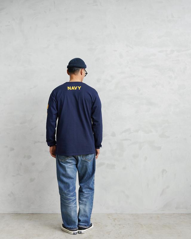 一般のSOFFEのラインでは販売の無い、軍関係のみに制作されたミリタリーラインのアイテムです。柔らかに肌に馴染むコットン100%生地に、左胸のロゴと左袖に大きくNAVYのプリント。シンプルながらインパクトもあるロンTは、シャツやジャケットとのレイヤリングはもちろん、半袖Tのインナーとしてもポイントになるコーディネートが楽しめます。