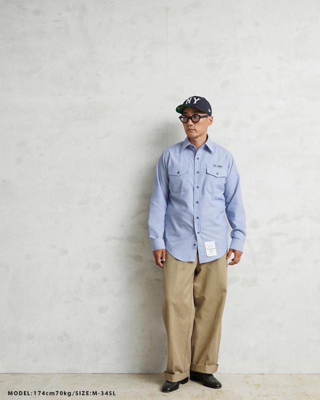 実物 新品 デッドストック 米軍 U.S.NAVY シャンブレーシャツ 長袖【Cx】【I】|ミリタリーシャツ ワークシャツ メンズ トップス カジュアル 軍放出品 軍モノ おしゃれ 大きいサイズ ライトブルー