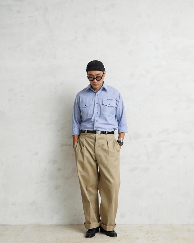 | 商品説明 | 実物 新品 デッドストック 米軍 U.S.NAVY シャンブレーシャツ 長袖のご紹介です。 制式名称:SHIRT,MAN’S UTILITY WORK 米海軍(U.S.NAVY)のシャツでU.S.NAVYを最も象徴するウェアのひとつがこのシャンブレーシャツではないでしょうか。 ミリタリーやワークといったテイストを売りにした多くのメーカーがリリースしているシャンブレーですが、コストやシルエット、また本物だけが持つ存在感といったことを考えると、結局行き着くところはこのような伝統的に作っている物にたどり着きます。 胸ポケの上にU.S.NAVYパッチが付いた実物新品未使用です。裾に付いたタグもデザイン的なアクセントになっています。 デニムやチノパンなどボトムスを選ばずコーディネイトしやすく重宝するアイテムです。 | |||||||||||||||||||||||||||||||||||||||||||||||||||||||
