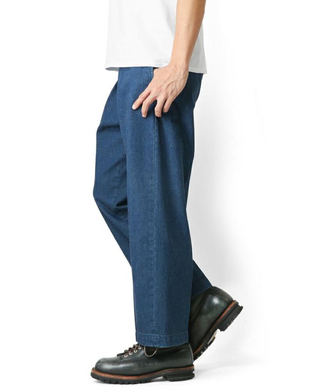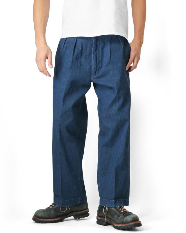 シルエットは太めのトラウザーパンツです。トレンドのワイドなシルエットも綺麗めなトラウザータイプなので、カジュアルにも綺麗めにも合わせやすく、大活躍間違いなしの1本です!クラシックな印象を与えるタックが特徴的です。腰裏の別生地のヘリンボーン素材はフラシ仕様でつけられ、表地と腰裏とポケットスレーキと、見えないところにヴィンテージディテールが仕込まれております。ヴィンテージディテール仕様ながらも、シルエットはトレンドでもあるルーズなシルエット。コーデュロイ素材と落ち着いたモノトーンカラーでクラシックなスタイリング楽しんで頂きたいです。