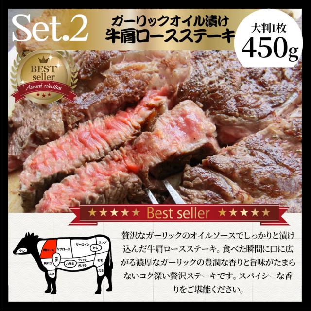 ◇スパイシーガーリックステーキ:450g◇ハラミステーキ(タレ漬け):250g