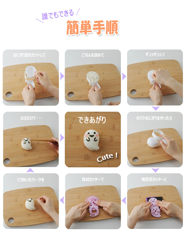 おにぎり 押し型 おばけおにぎりセット 抜き型 キャラ弁 ( ご飯型抜き お弁当グッズ おにぎり型 ハロウィン イベント パーティ 海苔カッター デコ弁 )