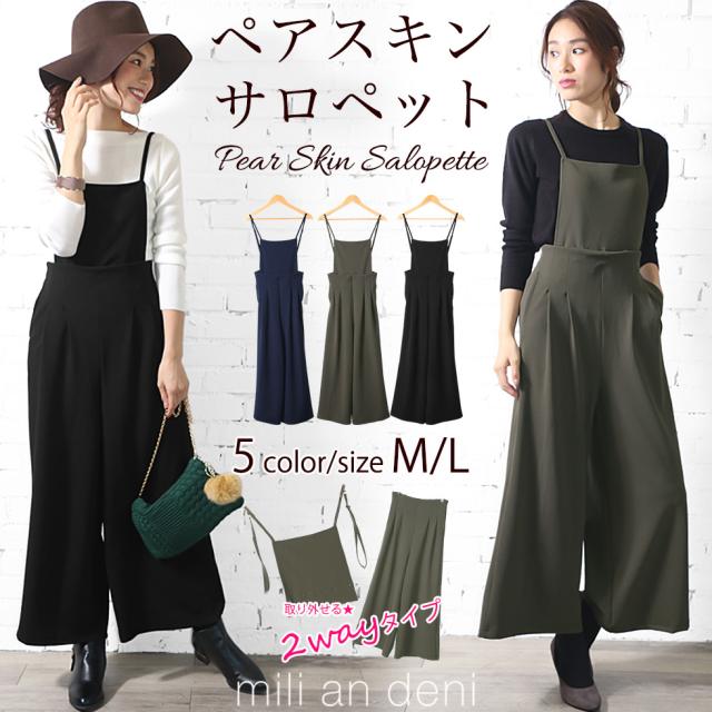 春新作 コンビネゾン サロペット オールインワン ロンパース ペアスキン キャミ ワイドパンツ 無地 M レディース 春夏 ミリアンデニ p71929