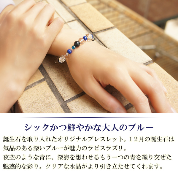 誕生石を取り入れたオリジナルブレスレット。12月の誕生石は気品のある深いブルーが魅力のラピスラズリです。