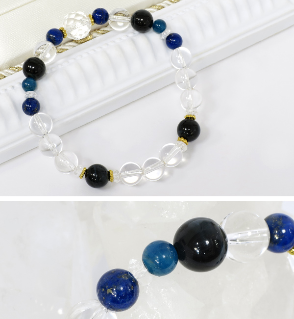 シックかつ鮮やかな大人のブルー、クリアな水晶がより引き立たせています。
