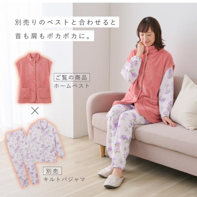 ベスト あったか ボア 冬 パジャマの上 上着 袖なし 羽織り ルームウェア フリース素材 防寒 お洒落 おしゃれ 暖かい レディース LL 大きいサイズ 大人 シニア 肩まであったかチュニック丈ホームベスト ポケット付き 部屋着 長い ロング丈 ミセス ギフト 誕生日プレゼント