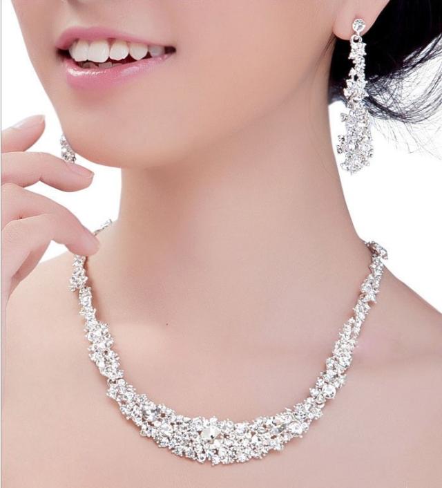 【即納】パーティー ・ウェディング 結婚式にぴったりアクセサリー、華やかに演出!☆ ラインストーンネックレス&ピアス、イヤリング