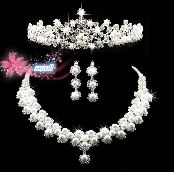【普通郵便送料無料】セットで000円お買い得★豪華ウェディングジュエリー三点セット(ティアラ、ネックレス)】 ブライズメイド