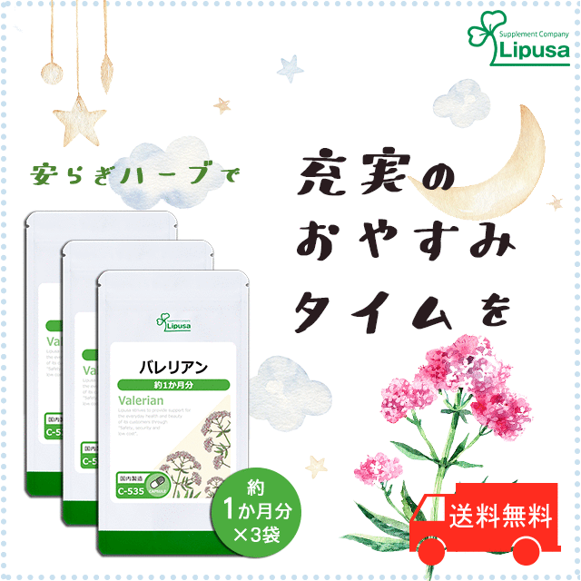 バレリアン 約1か月分×3袋 C-535-3 (60カプセル×3袋) 送料無料 健康 リラックス サプリ リプサ Lipusa 公式 agesugi_sbe