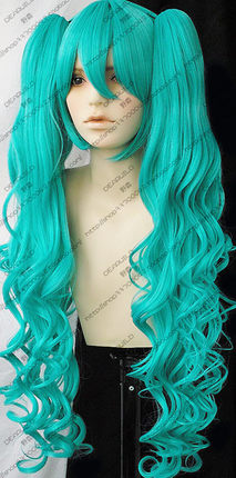 初音ミク かつら ウィング ツインテール パーマ ピーコックブルー 原宿系 キャラクター ゲーム コスプレ コスチューム