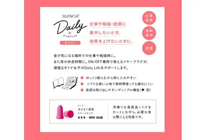 【メール便配送可能】耳栓 サイレンシア デイリー SLC-DAILYは、仕事や勉強、リラックスタイムに最適な女性向けスモールサイズの耳せんです。