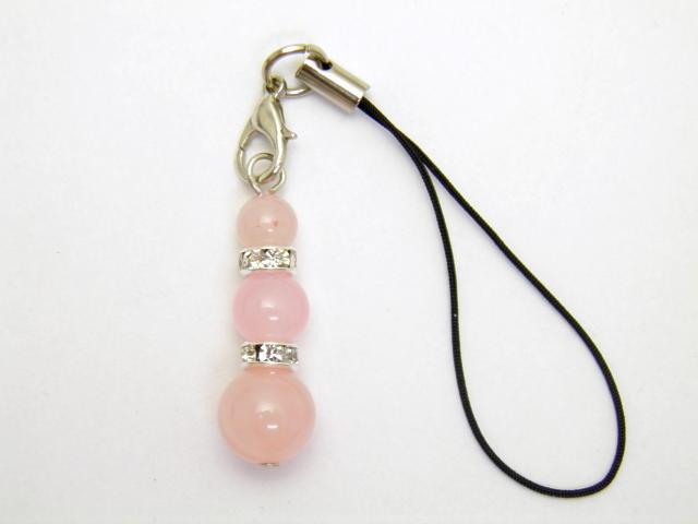 3Pストラップ ローズクォーツ パワーストーンストラップ 携帯ストラップ スマホピアス イヤホンジャック パワーストーン