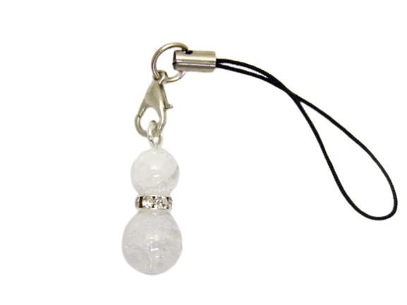 ひょうたんストラップ M クラック水晶 パワーストーンストラップ ひょうたん携帯ストラップ ひょうたんスマホピアス 瓢箪 ひょうたんイヤホンジャック パワーストーン