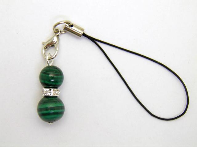 ひょうたんストラップ M マラカイト パワーストーンストラップ ひょうたん携帯ストラップ ひょうたんスマホピアス 瓢箪 ひょうたんイヤホンジャック パワーストーン
