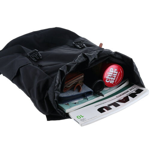 バックルタイプのかぶせとドローコードの2重構造で荷物の飛び出しを防ぎつつ、フォルムをきれいに保つデザインになっています。