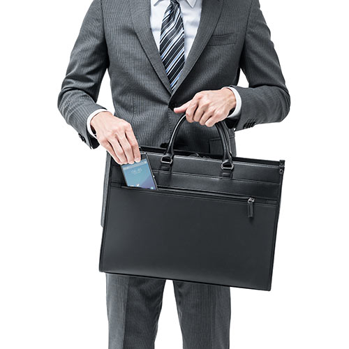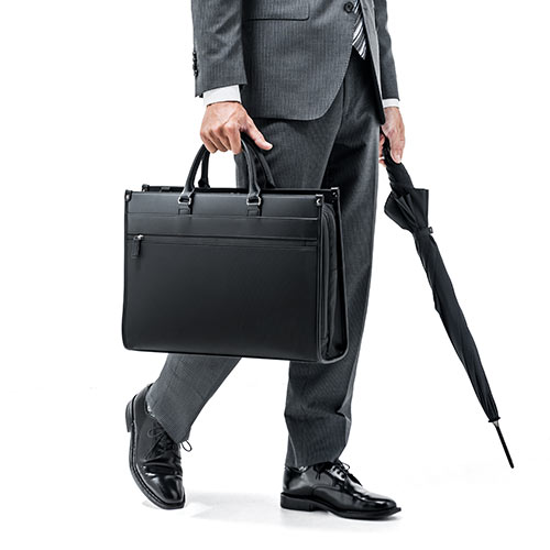 雨の日も安心して荷物を持ち運べる耐水タイプのビジネスバッグです。