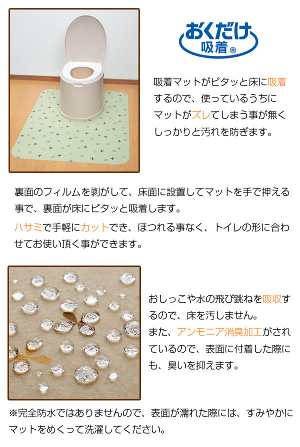 トイレの床の汚れを防ぐ、おくだけズレないポータブルトイレマット大判サイズ。