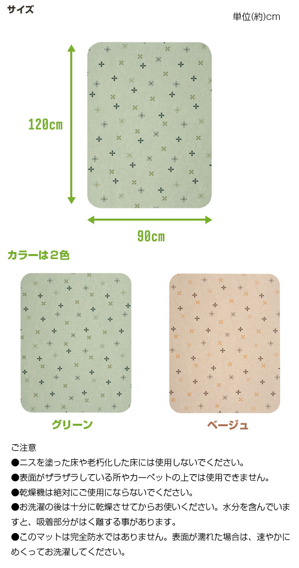 表面は撥水加工になっていて、おしっこや水の飛び跳ねを吸収して床を汚しません。