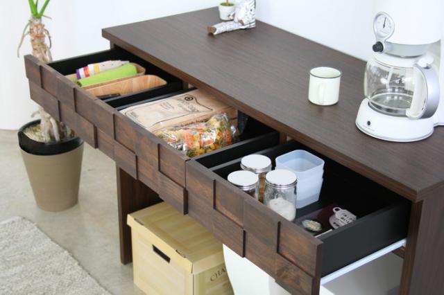 【サイズ】本体:W1196×D445×H850mm【素材】天板:強化紙、前面:アルダー無垢・オイル塗装、側:プリント【その他】天板耐荷重:15kg、棚板耐荷重:5kg