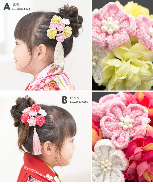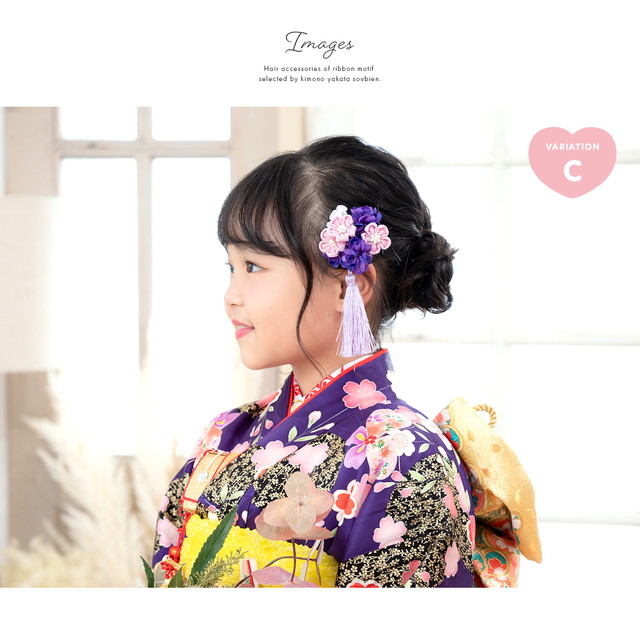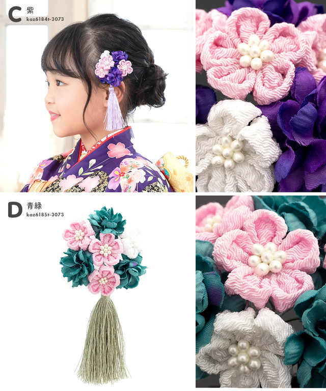 七五三を迎えられる3才、7才の女の子の晴れ着や、レディースの浴衣にもワンポイントとしてお似合いです。
