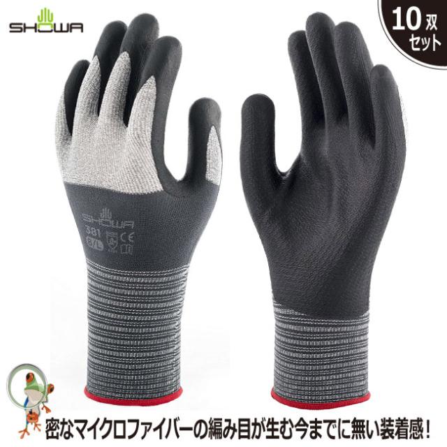 ゴム手袋 ショーワグローブ No.381 マイクロファイバー手袋 10双入り ニトリルゴム 耐油 ニトリルゴム製背抜き手袋