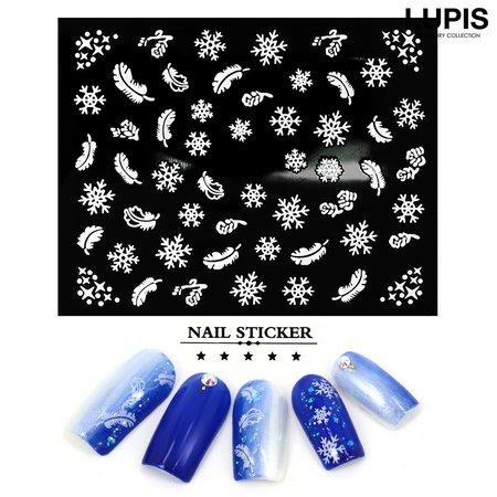 繊細で美しいデザインの雪の結晶とフェザー柄のネイルシール。