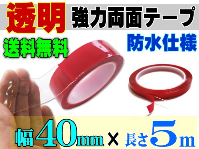 透明 両面テープ (40mm) 5m 【宅急便 送料無料】幅4cm 長さ500cm 超強力 クリアタイプ 厚手1mm 防水仕様 外装 内装 自動車パーツ ガラス 等に スコッチ 3M社 スリーエム社 製と同等の粘着力 多用途 アクリルフォームテープ 曲面対応 DIY 高透明 車用 バイク用 幅広 剥がせる