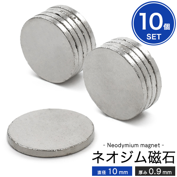 10個セット 丸型ネオジム磁石【直径10mm×厚さ0.9mm】強力 ネオジウム磁石 10×0.9mm 小さくて強力 手作り工作 DIYパーツ マグネット magnet
