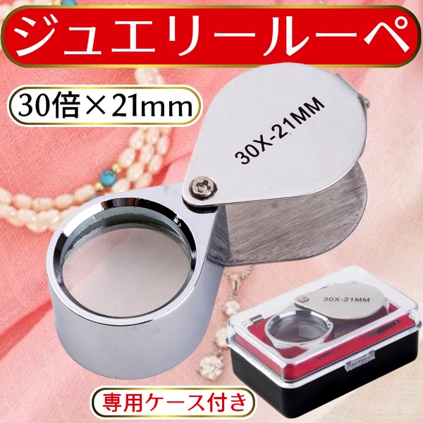 ジュエリー ルーペ 30 倍 21 mm 拡大鏡 マイクロスコープ コンパクト 高級 シルバー ケース付 プロ仕様 鑑定 眼鏡