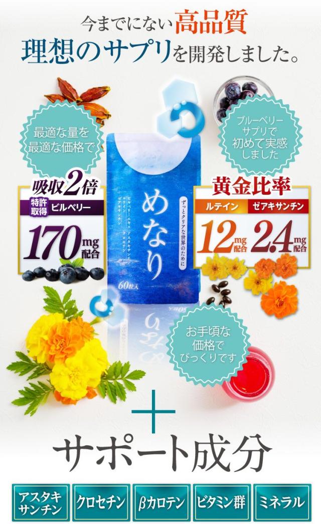 ビルベリー ルテイン さくらの森 めなり 1袋60粒 1ヶ月分 アントシアニン ゼアキサンチン アスタケサンチン クロセチン 夜目 トリ目 目の充血