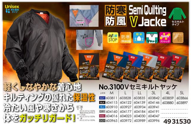 防寒ジャンパー 喜多 Vネック セミキルトヤッケ No3100 作業着 防寒 作業服