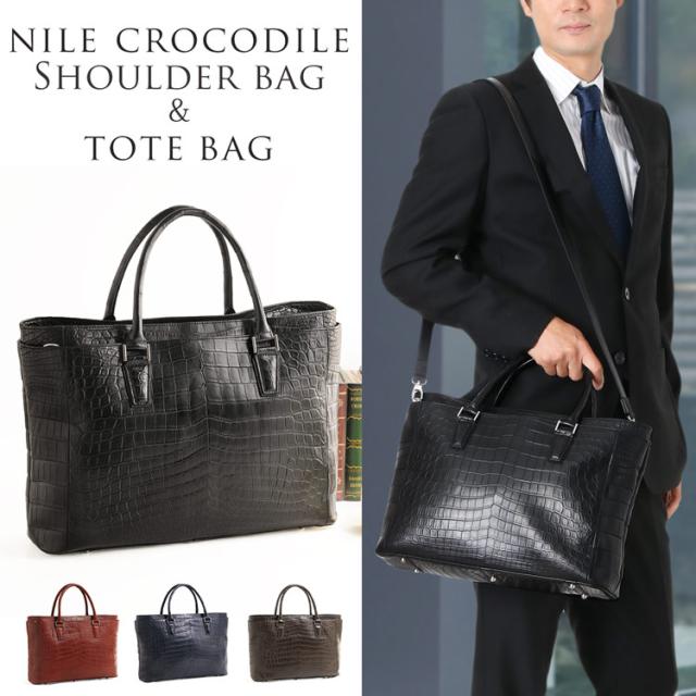 ●特長2WAY/A4対応/センター取り/斜め掛け●デザイン男の最高の憧れであるクロコダイルを贅沢に使用した紳士鞄。A4サイズが余裕で入るのでサイズ感も問題のない仕上がりになっています。●素材 『皮革の宝石』と称されるクロコダイルを艶感を抑えたマット加工を施しています。ナイルクロコダイルは数ある鰐革の種類の中でも人気の高い高級皮革。クロコダイルの腹部の革をバッグの中央に配したセンター取りの仕立て。●スタイルショルダーベルトが付いているので肩掛け、斜め掛けも可能、シーンによって使い分けできます。