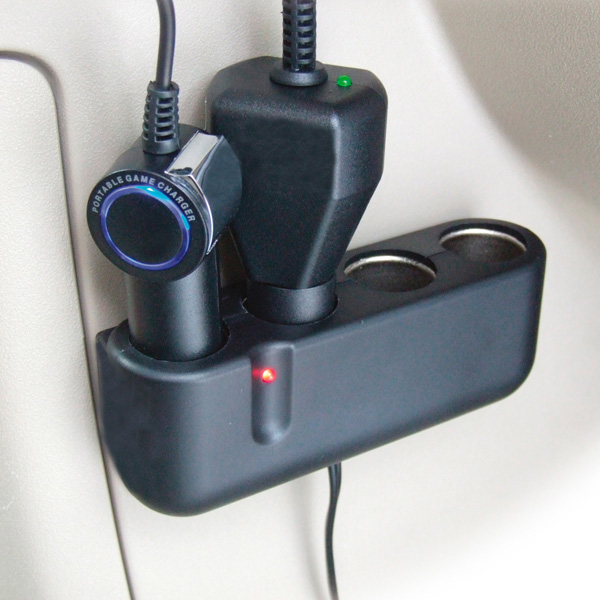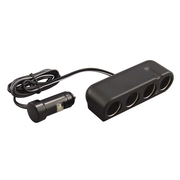 4連シガーソケット セパレートソケット コード長:約1m ブラック 車 アクセサリーソケット増設電源/ヤック PZ-727