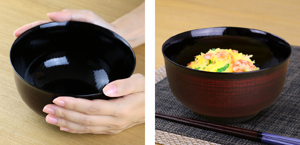 ●特殊塗装を施した、汚れが付きにくく洗いやすいプラスチック製の丼椀です。