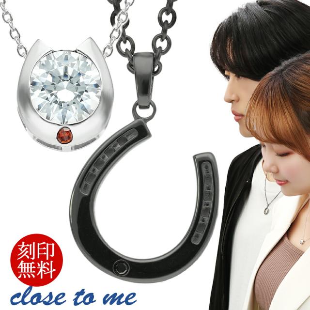 ペアネックレス 刻印無料 ダイヤモンド カップル ホースシュー 馬蹄 close to me シルバー 925 ペア ネックレス ペンダント お揃い スワロフスキー