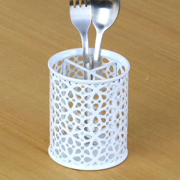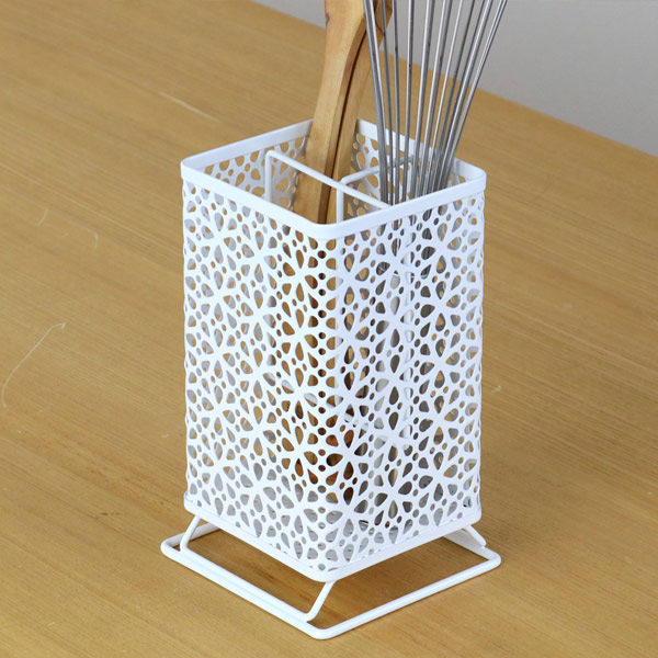 レース模様がかわいいスチールカトラリーケース