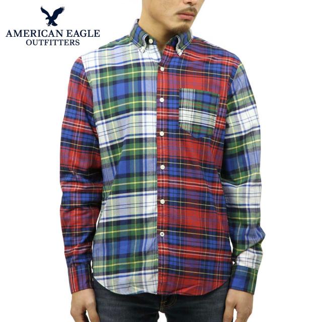 アメリカンイーグル シャツ メンズ 正規品 AMERICAN EAGLE 長袖シャツ ボタンダウンシャツ AEO PATCHWORK OXFORD SHIRT 0153-9836-900