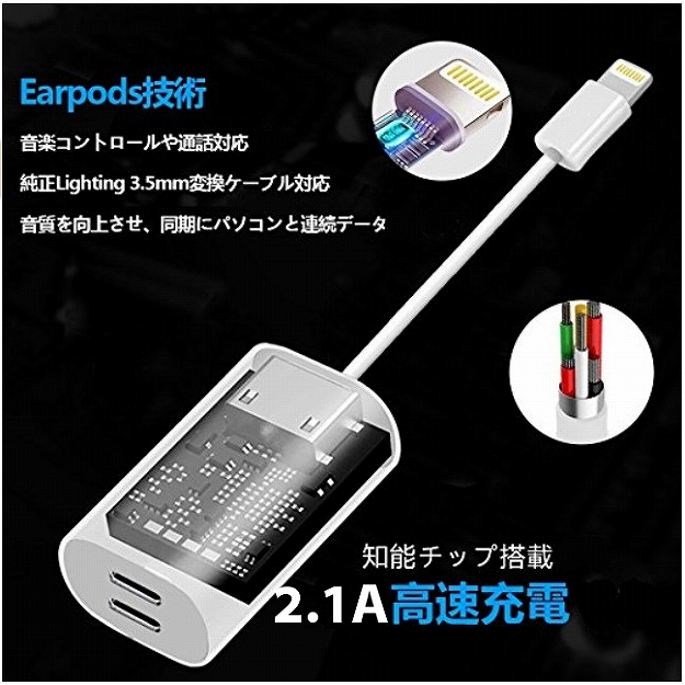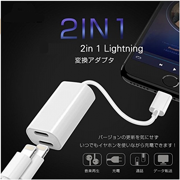 i phone 7 8 x plus s max 11 12 13 pro 音質 劣化 ライトニング ケーブル アダプタ アダプター 2in1 2.1A 充電 音楽 データ 2つ 2個 同時 iPhone8 iPhone7 Plus アイフォン7 アイフォン8 プラス 使える 使用 可能 iPhone X ios Lightning コネクタ アイフォーン イヤホン ライトニング 音楽再生 充電 通話 イヤホン 変換アダプタ 充電ケーブル イヤホン 充電 変換 アダプタ マイク i-os 10 ios11 14 IOS 11 対応 iPhoneX 音楽 同時 二股 ヘッドフォン ヘッドホン アイホン 2イン1 一番 最安 安い 2 1 2 又 また splitter スプリッタ